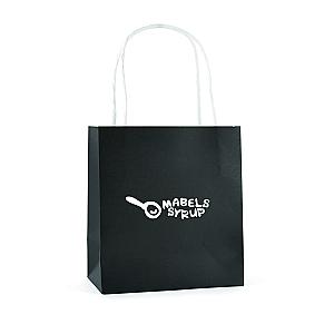 230gsm coloured small paper bag with paper twist handles and gusset.