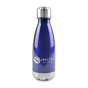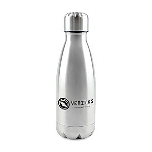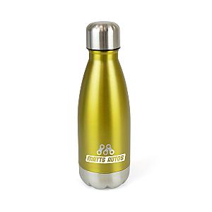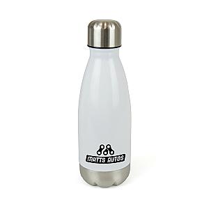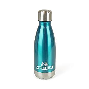 500ml single walled, stainless steel drinks bottle with silver screw on lid, silver base and coloured body. BPA & PVC free