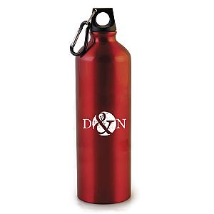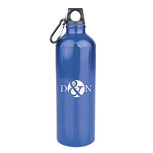 1 litre single walled, glossy aluminium sports bottle with a black PP plastic screw cap and black carabiner clip. BPA & PVC free.