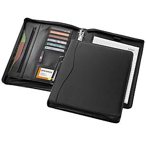 Portfolio with handle, zipper closure, ring binder, zipper pocket and document compartments. Includes 20 pages lined notepad. Pen and accessoires not included.