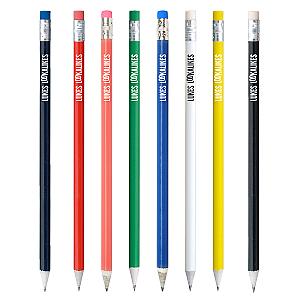 HB lead Pencil made from rolled recycled newspaper featuring a silver ferrule and coloured eraser to match pencil colour. Supplied sharpened. Due to the composition of the pencil there may be some dust contamination on the delivered article.