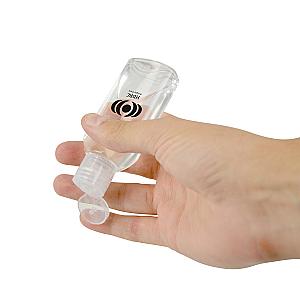 50ml instant hand sanitiser in a clear PET plastic bottle with a secure push down lid. Includes branded bottle label. Contains 62.5% alcohol.