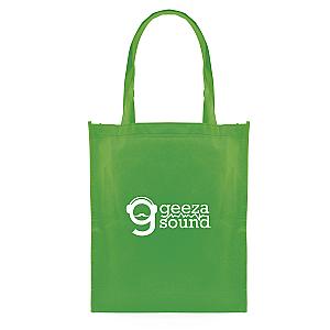 Recyclable 80g non woven PP shopper with gusset and long handles.