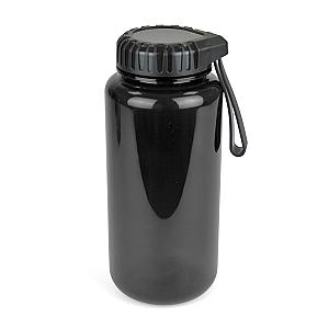 950ml single walled, translucent coloured, Tritan plastic gym bottle with silicone strap and PP Plastic black lid. BPA & PVC free