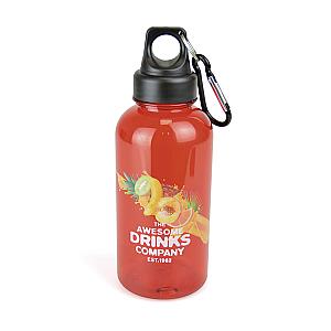 500ml single walled, translucent coloured, PET plastic drinks bottle with a black PP plastic screw on cap and black carabiner clip. A great giveaway for sports teams, ramblers and those who love the outdoors. BPA & PVC free.
