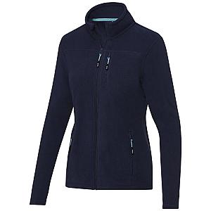 The Amber women's GRS recycled full zip fleece jacket – a perfect fushion of style and functionality. This jacket features a GRS recycled center front zipper coil for a sleek and durable closure. The inner stormflap with chinguard provides extra protection against the elements. The jacket has front pockets with secure zippers, allowing you to carry essentials with ease, and the chest pocket with zipper closure adds a touch style. Made from 174 g/m² GRS certified recycled polyester, the Amber fleece jacket is the perfect balance between warmth and lightness. Elevate your outdoor adventures with this remarkable jacket that embodies sophistication. The GRS certification ensures a 100% certified supply chain, from raw material to our printing techniques, making this garment a more responsible choice. This jacket is designed with a fitted shape for a feminine look.