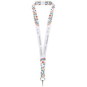 Addie full colour sublimation lanyard. Print is available to one or both sides. For double-sided printing, you can choose from the standard or fitted option (fitted means that the print lines up on both sides). Lanyard includes a metal hook and safety break eliminating choking hazards. Can hold a name badge, ID card or keys. Available in 4 different widths: 10, 15, 20 and 25 mm.