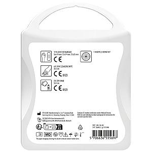 Ideal kit for every bike ride. Be prepared in the case of small injuries and flat tyres. Contents: 12 wash proof plasters, 4 skin cleansing swabs, 2 dry swabs, 1 repair kit. All of the first aid and care products within the kit meet all applicable EU regulations. Price includes full colour print.