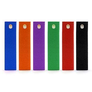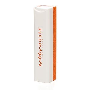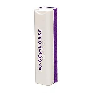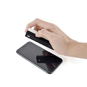 White plastic cuboid shaped lens and 16ml screen cleaner with coloured cleaning cloth all in one compact unit.