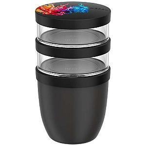 The Ellipse 3-piece lunch pot features three separate compartments to keep ingredients neatly separated. Each container has its own lid, preventing flavours and textures from mixing until you’re ready to eat. It keeps food warm for 6-8 hours or cold for up to 12 hours. The two top transparent containers each hold 200 ml, while the bottom container has a 500 ml capacity. Made from durable materials, the exterior stays cool and dry to the touch. Hand washing is recommended; the plastic lid components are dishwasher safe. BPA-free.