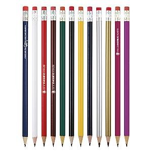 A traditional wooden pencil with an eraser tip. HB Lead.