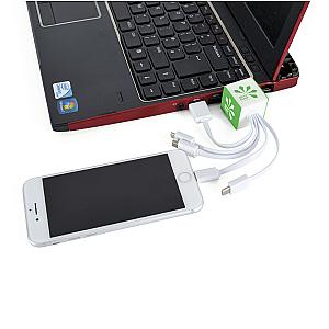 5-in-1 multi charger with bespoke PVC design. Works with most smartphones. Cables available in white. Price includes up to 4 PVC colours.