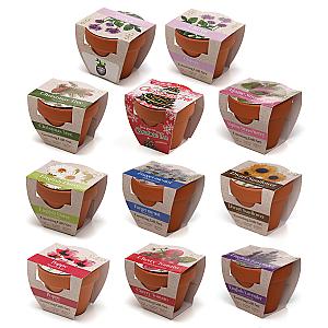 This charming kit includes a small terracotta flower pot, a CocopressĀ® compost tablet and a seed packet of your choice - everything needed to grow something special. Choose from an extensive variety of ready-made designs to reflect the seed of choice: Butterfly and Bee, Basil, Cabbage, Calafornian Poppy, Chamomole, Chives, Cornflower, English Daisy, Fennel, Forget Me Not, Herb Mixture, Lavender, Lettuce, Mint, Onion, Parsley, Parsnip, English Poppy, Radish, Sage, Dwarf Sunflower, Sunflower, Strawberry, Summer Flowers, Wildflower and Xmas Tree. The white panel to one side is personalised with your design or logo using a clear label. The sleeve features a customisable white panel, personalised with your design or logo on a sleek clear label. Perfect for promotional gifts, events, or adding a personal touch to green-thumb giveaways!