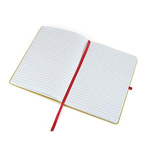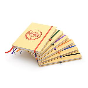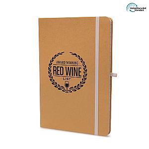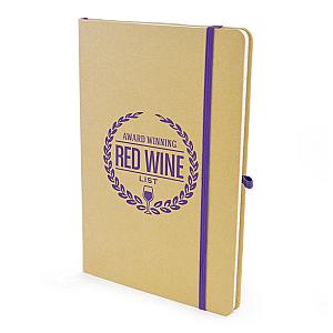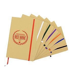 Keep your notes in order with this Recycled A5 Natural Notebook. Featuring a coloured bookmark and elastic closure to keep any pages in place. It's size is ideal for carrying handbags and backpacks for everyday use. Perfect for taking notes on the go or as a gift for team members and customers. Available in natural cover with coloured accents, choose from black, blue, red, amber, dark green and purple to make your of colours so you can match it with your brand and logo. Order yours today!