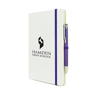 2-in-1 A5 white PU soft finish notebook with a matching Mole Mate Pen. (QS0865 & TPC982001)