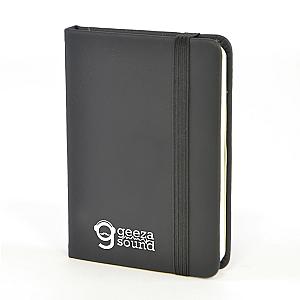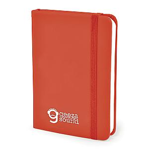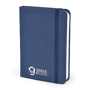 A7 PU soft finish 80 page lined notepad with book mark, pocket at back and an elastic closure