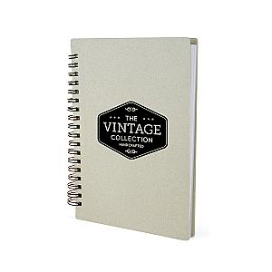 Spiral bound notebook made from ABS plastic and wheat straw with an antibacterial coating. Includes 70 sheets of lined white paper.