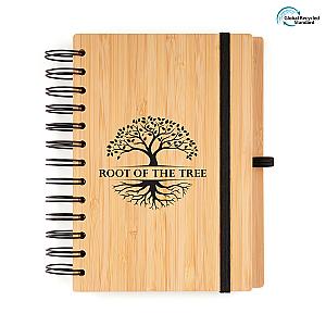 Leave a lasting impression with a bamboo promotional item. Great for events and exhibitions, this spiral bound bamboo cover notebook is an ideal option made from recycled materials. With 100 pages of lined Kraft paper featuring the recycled logo on the corner of every page for transparency. A great giveaway idea to promote your brand and message. Order yours today!