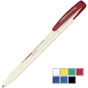 A modern twist action ball pen from Klio Eterna that has been engineered from ABS plastic and boasts an impressive 100% recycled rate. Made in Germany using climate-neutral production and 100% green electricity, this product is the true statement of sustainability and should be your go-to eco product. This promotional pen is made to order and you can customise the individual parts of the pen, which includes the barrel, upper barrel and the clip. You can pick between a wide range of 14 different standard colours and from 5000pcs you can even pantone match the whole pen! This elegant twist action pen is sure to stand out, not only with your colour combinations, but also the sleek and precise design will catch the attention of anyone. Supplied with a quality Silktech refill, made of recycled PP material, that is guaranteed to have a writing length of 3000m and can be supplied in blue or black ink. A combination of precise design and engineering oozes quality and ensures a writing experience like no other. The eco-credentials are not just limited to the pen either! The pens are supplied in Bio foil bags which are made up of 80% renewable raw material and are 100% recyclable. This product is guaranteed to stand out and is the perfect way to advertise your brand through a unique design, but also show your brands commitment to a more sustainable and green future. Get in touch today and order now!