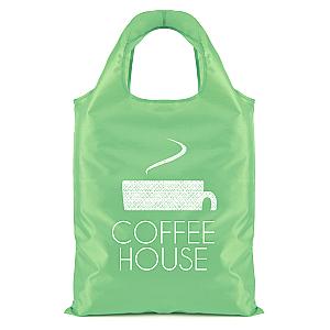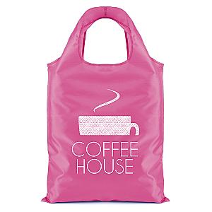 210D polyester shopper bag which conveniently folds into the side pouch of the bag and seals with a zip