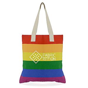 This 10oz rainbow cotton shopper is the perfect promoter for your brand! With a rainbow striped design, this vibrant bag has been created to stand out, while offering a high quality feel and longevity. It's the perfect giveaway for exhibitions and trade shows. Featuring red, orange, yellow, green, blue and purple stripes with long cotton webbed handles and a large branding area with full colour print options to make this your most colourful promotion yet. It's a great option for pride awareness, charities and for children. Available in rainbow. Order yours today!