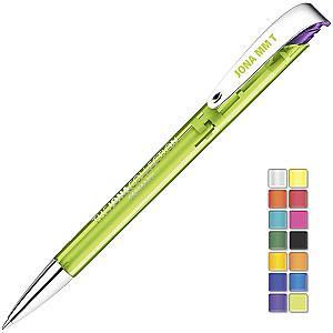 A translucent push action ball pen from Klio Eterna featuring a metal nose cone and a metal clip. Made in Germany using climate-neutral production and 100% green electricity. 20% of the plastic used to produce this product is made from recycled ABS plastic! This promotional pen is made to order and you can customise the individual parts of the pen. You can pick between a wide range of 13 different standard colours and from 5000pcs you can even pantone match the whole pen! This push action ball pen is sure to stand out, not only with your colour combinations, but also the sleek and precise design will catch the attention of anyone. Supplied with a quality Silktech refill, made of recycled PP material, that is guaranteed to have a writing length of 3000m and can be supplied in blue or black ink. A combination of precise design and engineering oozes quality and ensures a writing experience like no other. Get in touch today and order now!