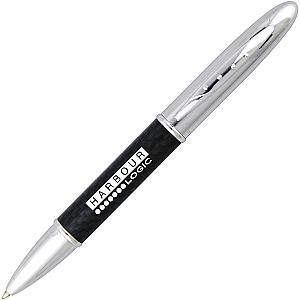 A modern-look, twist action ball pen with a carbon fibre barrel. Can be supplied on its own or as a set with the matching roller ball.