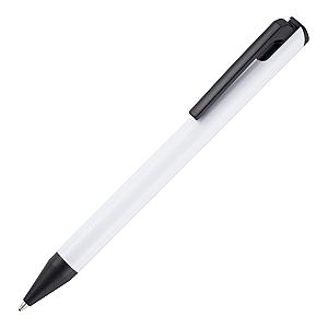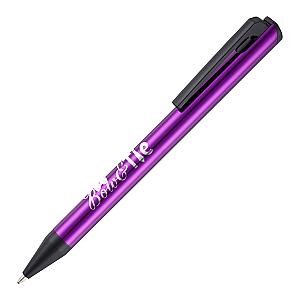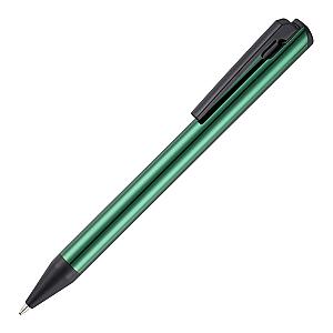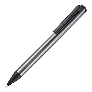 A contemporary ball pen with clip push mechanism, stunning metallic barrel and black trims.