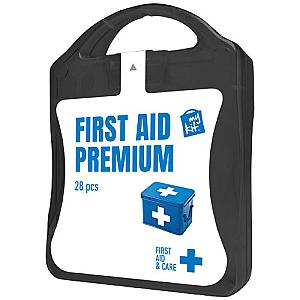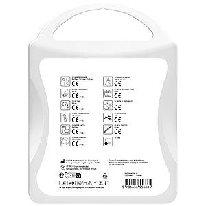 This extensive first aid kit is a handy thing to have in your house to be prepared for injuries and emergencies. Content: 1 first aid guide, 1 blister plasters, 12 wash proof plasters, 1 metal tweezer, 1 scissor, 1 triangular bandage, 1 pair of disposable gloves, 2 wound compress, 1 sterile wound dressing, 2 dry swabs, 4 skin cleansing swabs, 1 Mouth-to-Mouth shield. All of the first aid and care products within the kit meet all applicable EU regulations. Price includes full colour print.