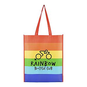 80gsm non woven PP shopper with horizontal rainbow print, gusset and long handles.