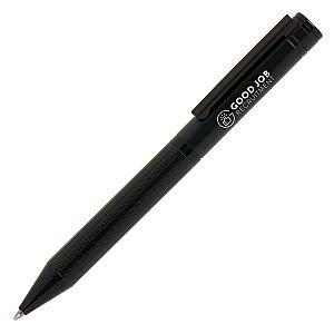 Introducing our premium promotional Track ball pen, a classy and reliable writing instrument designed to boost your brand. Crafted with an all-black design with a distinctive track patterned barrel this pen exudes class and quality. This pen ensures a smooth and seamless writing experience. Customised with your company logo or message, chrome undercoat for mirror chrome engraving to the top section. This pen is the perfect marketing tool and an ideal giveaway for any occasion. Whether used in meetings, conferences, or daily business interactions, this pen serves as a stylish reminder of your brand's quality and professionalism. Make a lasting impression with this stylish and dependable writing instrument. Order yours today!