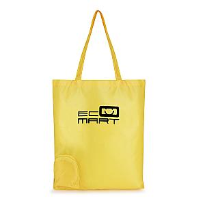 210D polyester shopper bag which conveniently folds into the side pouch with a zip closure